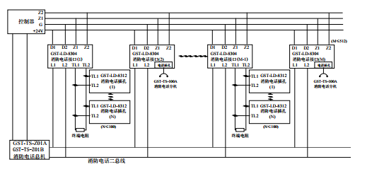 五、海灣GST-LD-8304消防電話接口應用方法