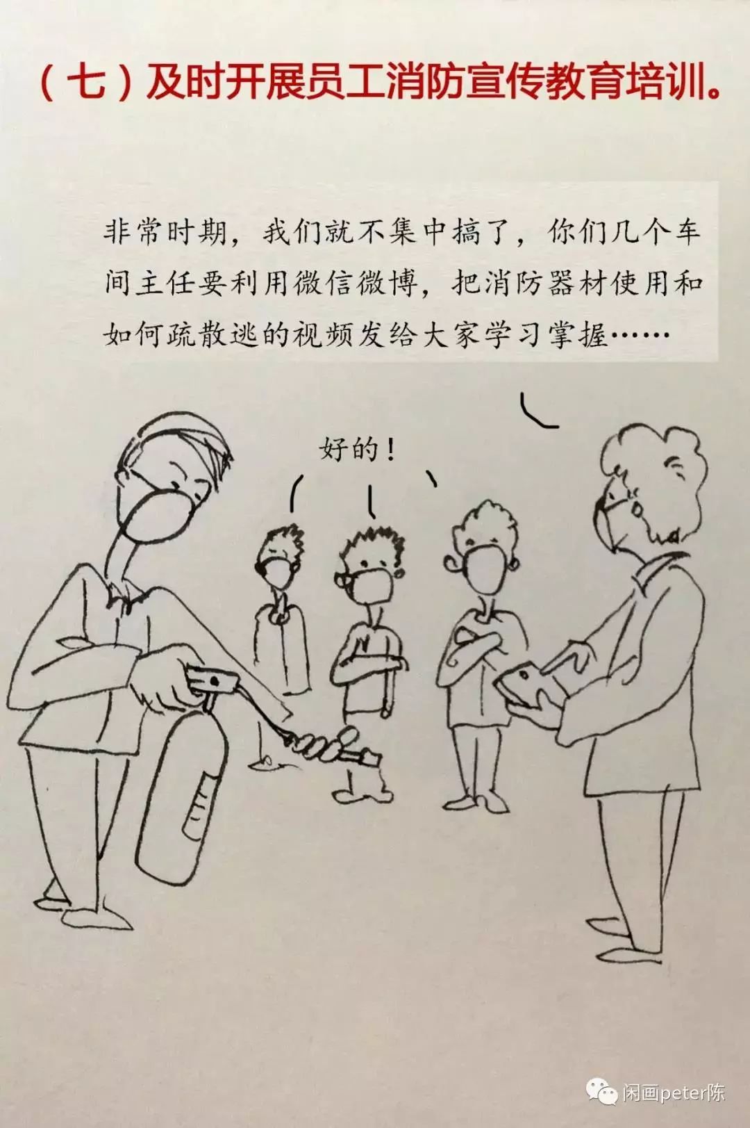 各企業(yè)、各單位要及時組織消防安全培訓(xùn),使每名員工做到“一懂三會”(即:懂本場所火災(zāi)危險性,會報火警、會撲救初起火災(zāi)、會疏散逃生)。換崗、新入職員工必須經(jīng)過消防安全培訓(xùn)方可上崗。消防控制室值班人員及從事電焊、氣焊的人員,必須經(jīng)培訓(xùn)考試合格持證上崗。要在公告欄、過道等顯著位置張貼消防宣傳畫,利用電子屏、員工微信群廣泛開展消防宣傳提示。