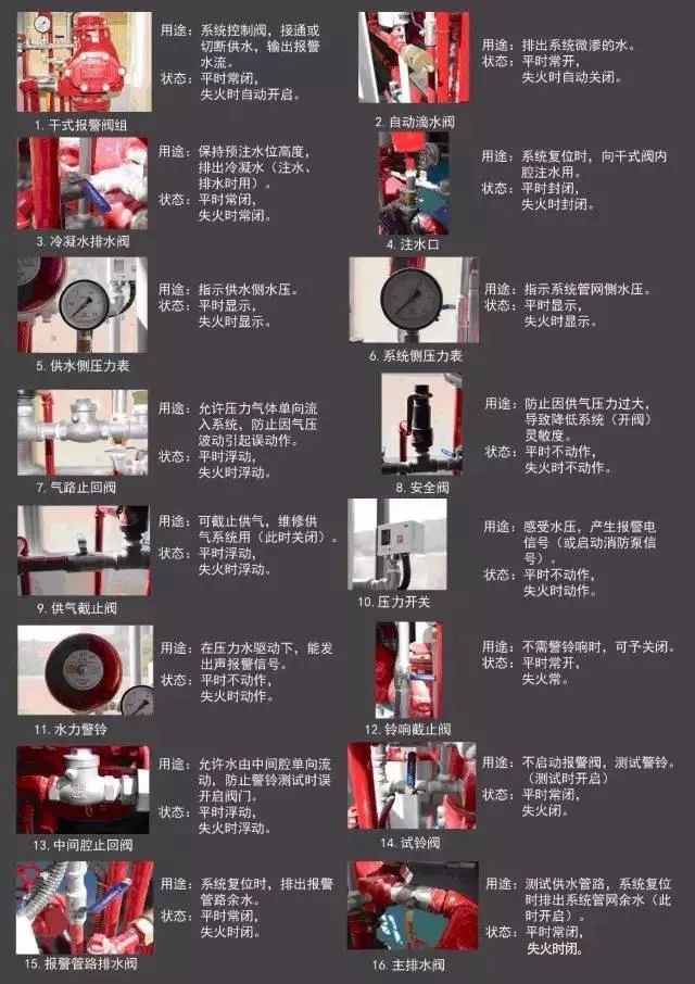 保護區域出現火警時,探測系統首發動作,打開預作用雨淋閥以及系統中用于排氣的電磁閥(出口接排氣閥),此時系統開始充水并排氣,從而轉變為濕式系統,如果水勢繼續發展,閉式噴頭開啟噴水,進行滅火。這樣就克服了雨淋系統會因探測系統誤動作而導致誤噴的缺陷。
