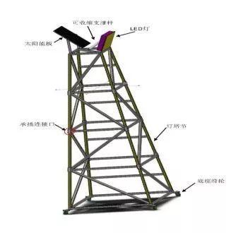 一種可移動式太陽能施工照明燈,包括一個可移動式燈塔架、太陽能蓄電池板及LED燈,每個燈塔架包括由一個可移動底座、4到6個可組裝式燈塔節(jié),所述可組裝式燈塔節(jié)每個高1m,上下成椎體,最大燈塔節(jié)邊長為1米,最小燈塔節(jié)邊長為0.4米,可移動式底座由4個萬向輪組成,每個萬向輪均設(shè)置鎖定裝置,移動時將鎖定裝置解鎖方可移動。