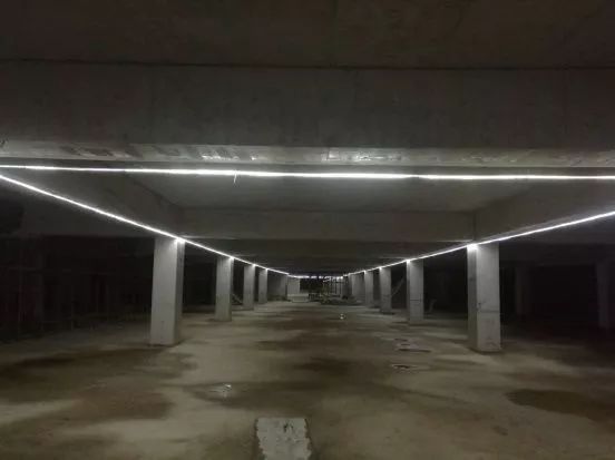 在地下室具備布設(shè)照明時,根據(jù)照明要求,沿梁下設(shè)置燈帶,燈帶連接使用專用接頭。相對傳統(tǒng)照明布設(shè),LED燈帶具有以下特點:體積小,亮度高;綠色環(huán)保,節(jié)能;高效穩(wěn)定,無連接處的陰影;使用壽命長(一般正常壽命在8~10萬小時),布置簡單,拆改方便快捷的特點。