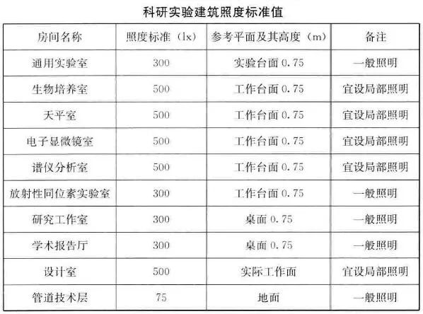 1、科研實驗用房,工作面上的平均照度標準應(yīng)符合下表的規(guī)定。