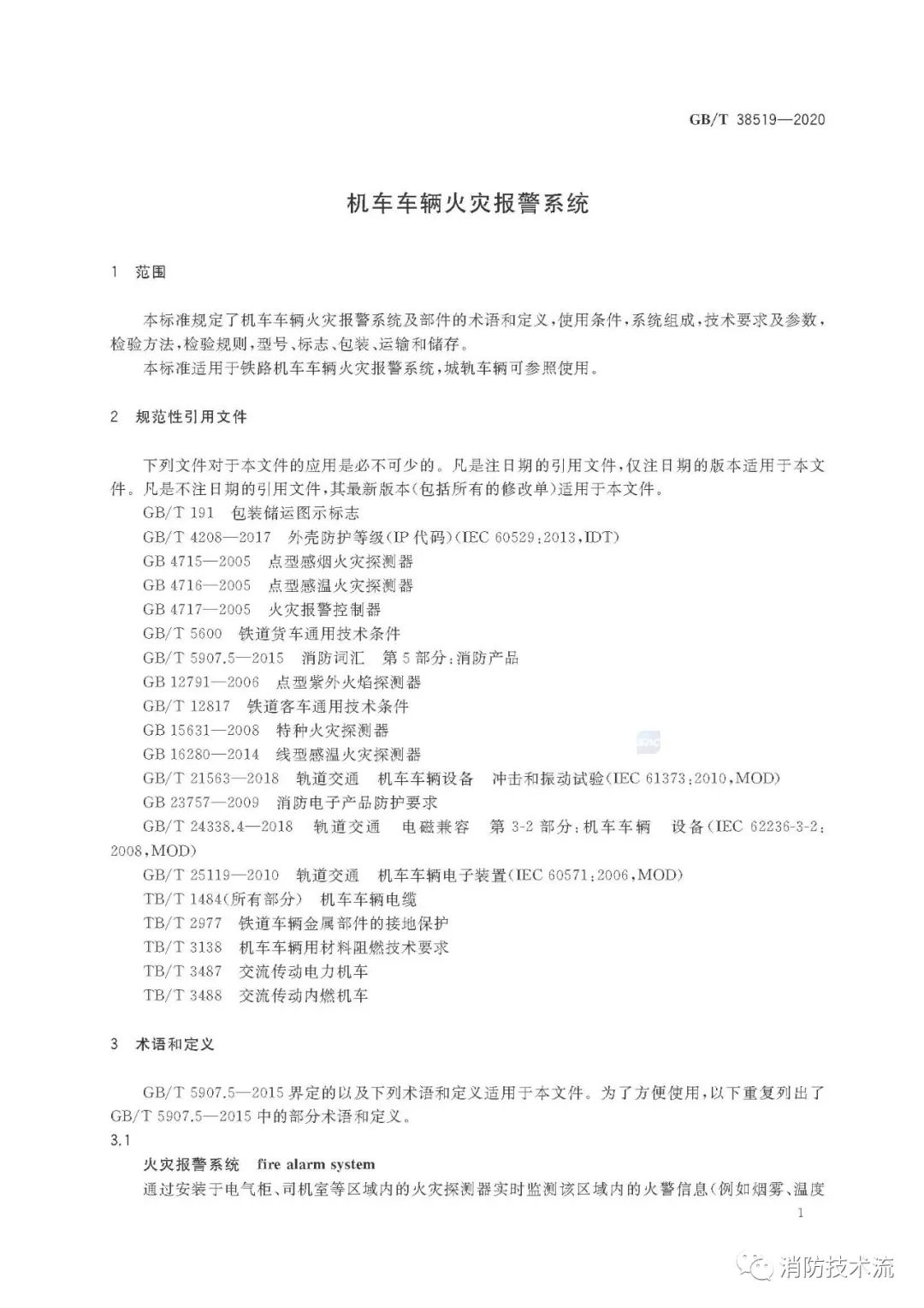 本標(biāo)準(zhǔn)適用于鐵路機(jī)車車輛火災(zāi)報(bào)警系統(tǒng),城軌車輛可參照使用 。