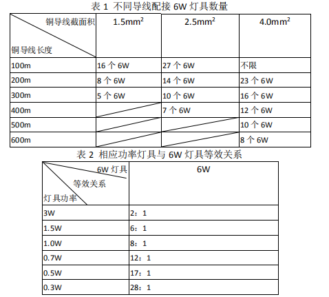 的 ZRRVS 線,各種分配電裝置每個支路線路長度和配接燈具數(shù)量應(yīng)滿足下表要求。