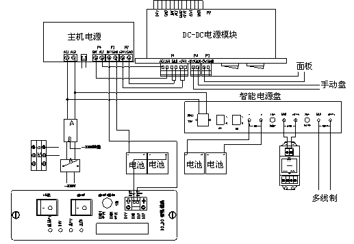 GST9000控制器電源配置包括主、備電兩部分,包括主機電源、變壓器、蓄電池、智能電源盤等如圖2-12所示。