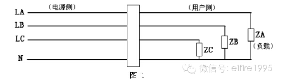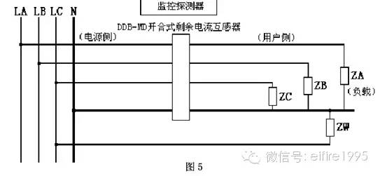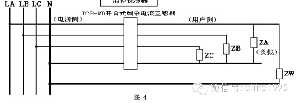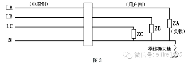 4、互感器用戶側零線有負載接到互感器前的相線,即保護區域以外的其他線路與用戶側“共零”,如圖5。