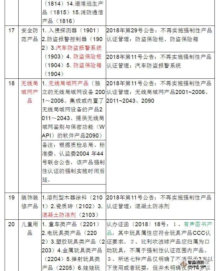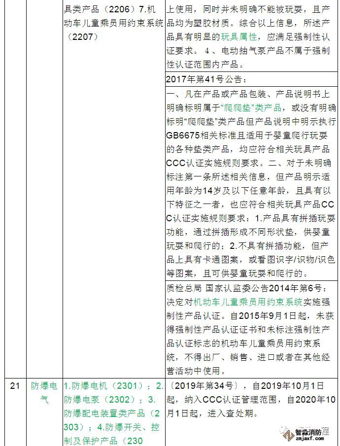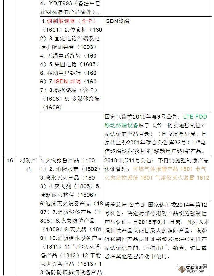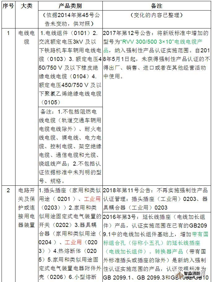 備注:以上分類以國家認監委2014年第45號公告《國家認監委關于發布強制性產品認證目錄描述與界定表的公告》(2014年12月發布)為基礎。2014年12月以后的目錄調整情況,已經在備注中注明,可查詢相關文件獲取準確信息。以上內容更新至2019年7月12日。