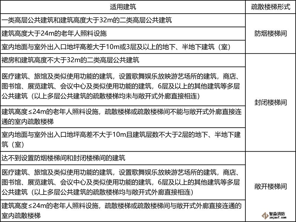 1. 室內地面與室外出入口地坪高差大于10m或3層及以上的地下、半地下建筑(室),其疏散樓梯應采用防煙樓梯間;其他地下或半地下建筑(室),其疏散樓梯應采用封閉樓梯間。