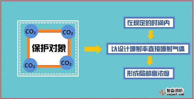 局部應(yīng)用滅火系統(tǒng)指在規(guī)定的時(shí)間內(nèi)向保護(hù)對(duì)象以設(shè)計(jì)噴射率直接噴射氣體,在保護(hù)對(duì)象周?chē)纬删植扛邼舛龋⒊掷m(xù)一定時(shí)間的滅火系統(tǒng)。