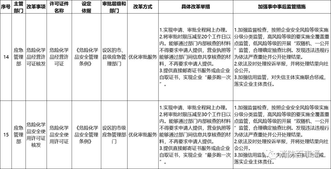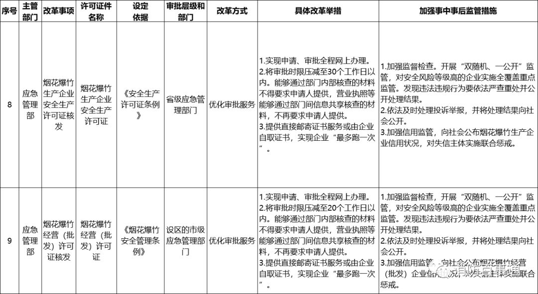 對于實行優(yōu)化審批服務的改革事項,應急管理部有關司局和有關省級應急管理部門要嚴格落實《清單》的具體規(guī)定,承接下放的審批權限,縮短審批時限,壓減不必要的證明材料,結合本地區(qū)實際進一步探索優(yōu)化審批服務的新舉措。