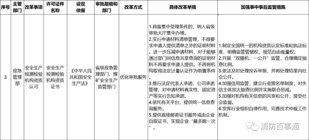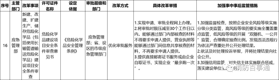 (一)公布改革事項清單。根據(jù)《通知》要求,應急管理部對上述16項改革事項,制定并公布《應急管理部“證照分離”改革全覆蓋試點事項清單(中央層面設定)》(見附件,以下簡稱《清單》)。有關省級應急管理部門、消防救援機構要對照《清單》,明確本單位、本地區(qū)實施的許可事項清單,并在本單位官方網(wǎng)站公布。