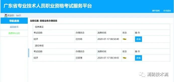 點擊【消息中心】鏈接,左側分業務系統顯示考生所有消息列表,已查看、未查看的消息分別顯示。