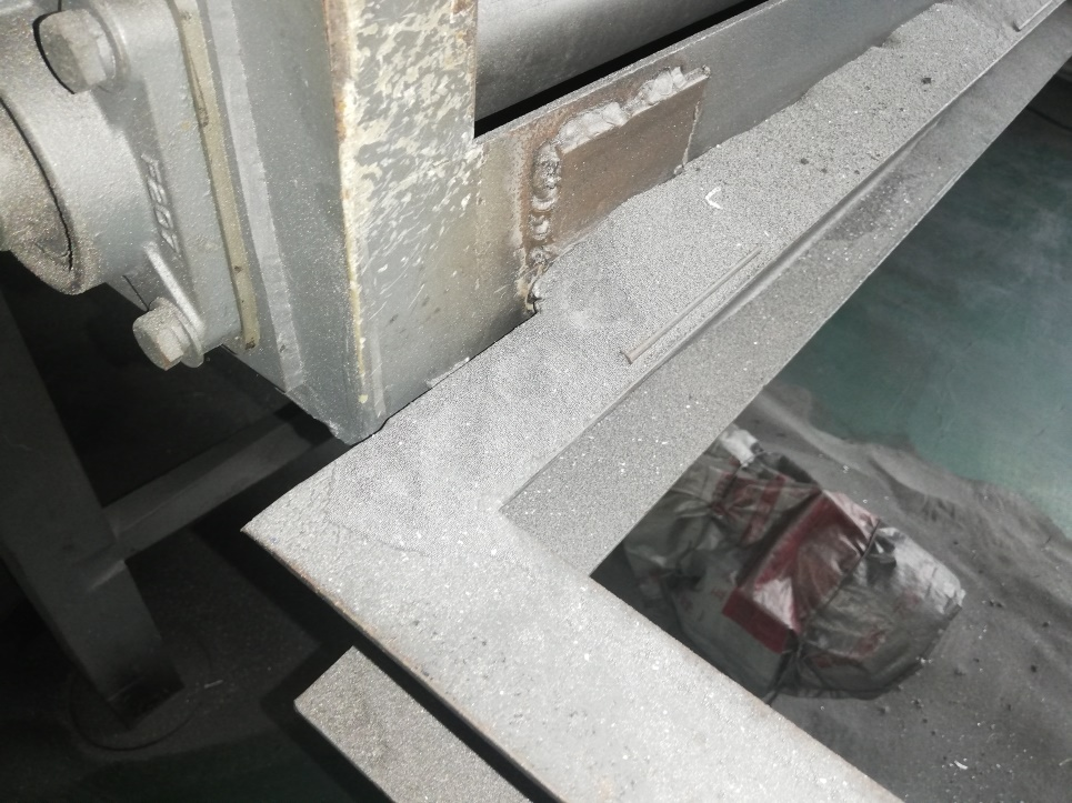 4、生產車間西北側拋丸機,現場鋼丸未及時清理。