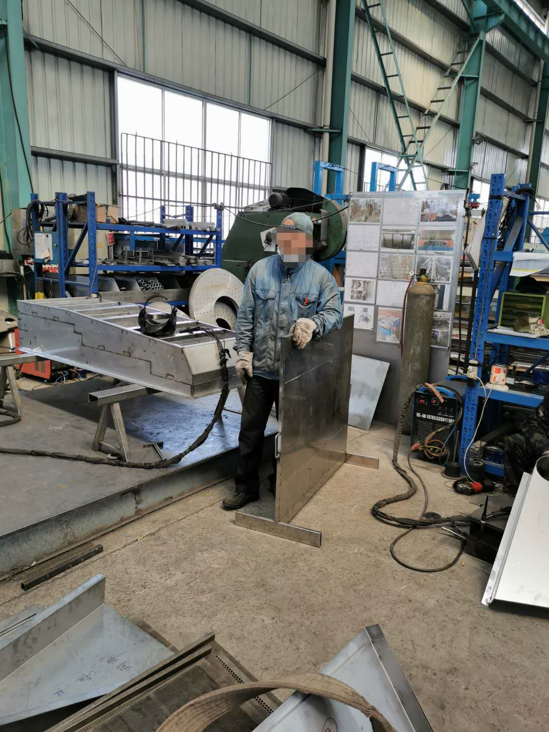 檢查過程中發現,兩位電焊工未申領電焊作業證,但在車間中間西側位置進行電焊作業。