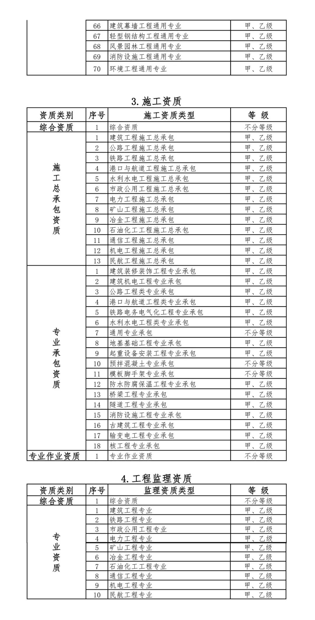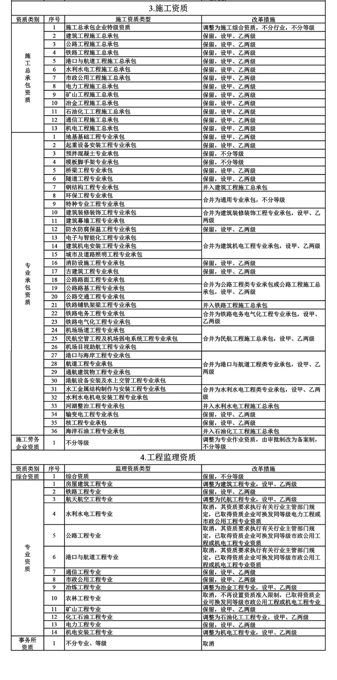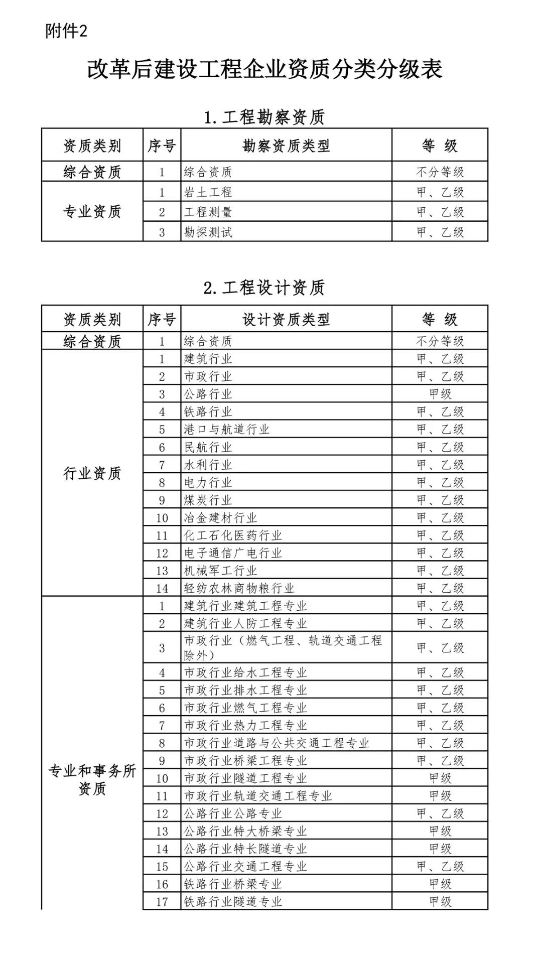 2.改革后建設工程企業資質分類分級表