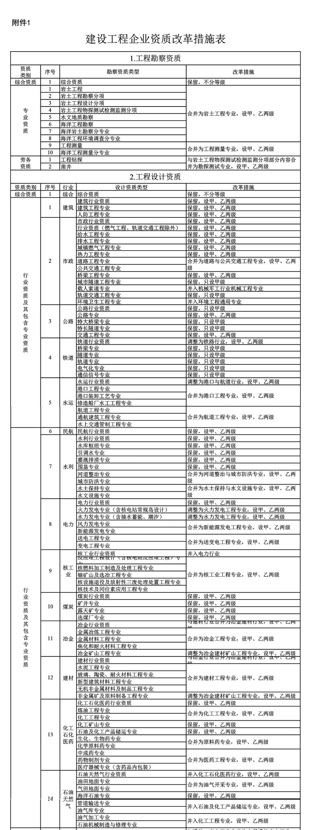 附件:1.建設工程企業資質改革措施表