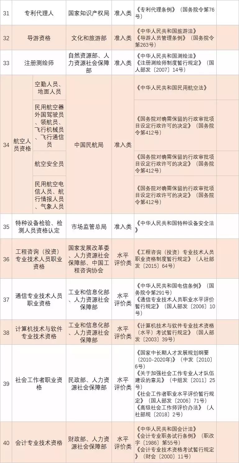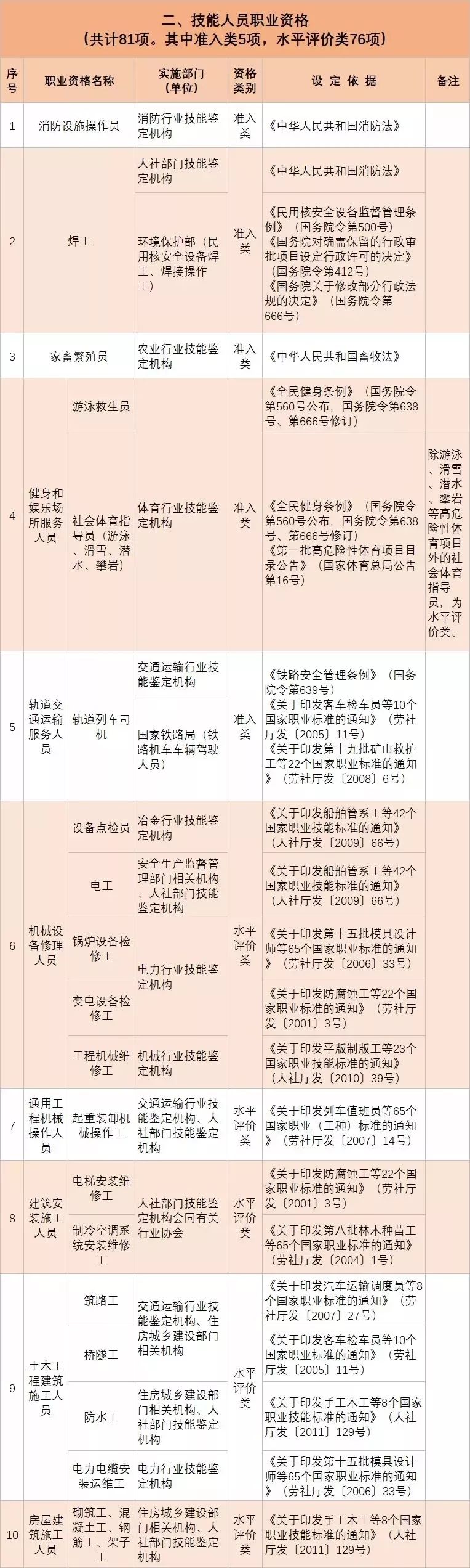 從2020年1月起,除與公共安全、人身健康等密切相關的消防員、安檢員等7個工種依法調整為準入類職業資格外,用一年時間分步有序將其他水平評價類技能人員職業資格全部退出國家職業資格目錄,不再由政府或其授權的單位認定發證;