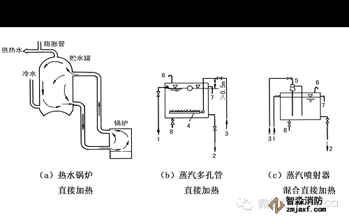 直接加熱設(shè)備:鍋爐直接加熱、蒸汽多孔管或蒸汽、噴射器加熱水箱;