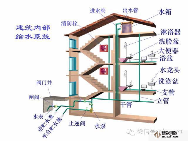 引入管、水表節(jié)點、給水管道、給水附件、升壓和儲水設(shè)備;
