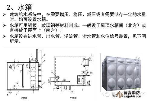 5.消防水箱:消防水箱對撲救初期火災(zāi)起著重要作用。