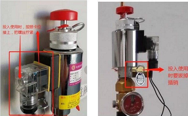 電磁驅動裝置上裝有插銷,是為了防止在運輸、安裝、調試過程中碰撞、震動使閘門誤動作。在現場安裝完畢,投入使用前必須抽出安全插銷,否則閥門將打不開。