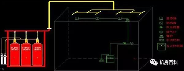 2)所有間隔必須密閉固定,藥劑噴放時無泄漏。系統采用組合分配方式,當某個保護區有火情發生時,煙、溫兩路探頭把火警信號傳至氣體滅火控制盤及控制室,聲、光自動報警并按照預定模式自動延時,啟動電磁閥及方向閥,使FM-200儲氣鋼瓶噴放氣體至發生火情的保護區, 也可以手動放氣或進行機械緊急啟動。