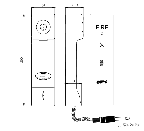 消防電話分機是消防專用總線制通訊設(shè)備,該電話分機為固定式安裝,摘機即呼叫電話主機;另一個分機為手提式,可直接插入電話插孔呼叫電話主機。
