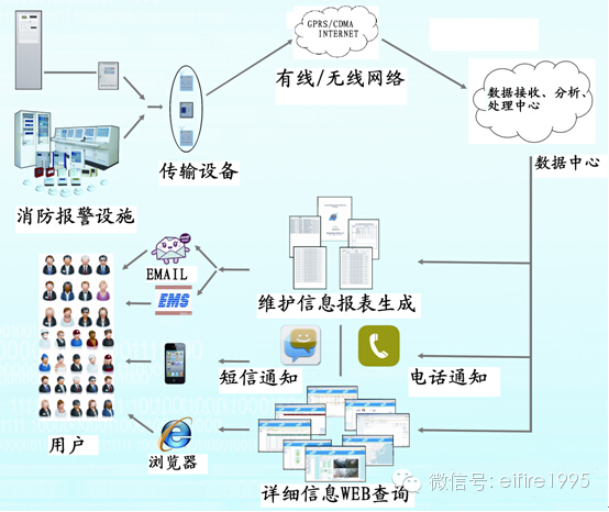 目前國內許多城市正在推廣城市火災報警遠程監控系統,該系統通過遠程采集報警信號實施監控,但其具有一定的局限性。采集的僅僅為開關量的報警信號,只能起到遠程“值班”作用,不能對系統的運行情況進行分析和故障預測,不能夠起到維護保障作用,不能解決系統因故障失效(或接近失效)而漏報、誤報火警的問題1。